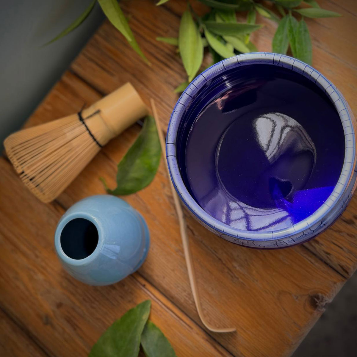 ویسک (همزن) این ست صد پر و از جنس بامبو محلی است که برای ترکیب کردن پودر ماچا با آب استفاده می شود.